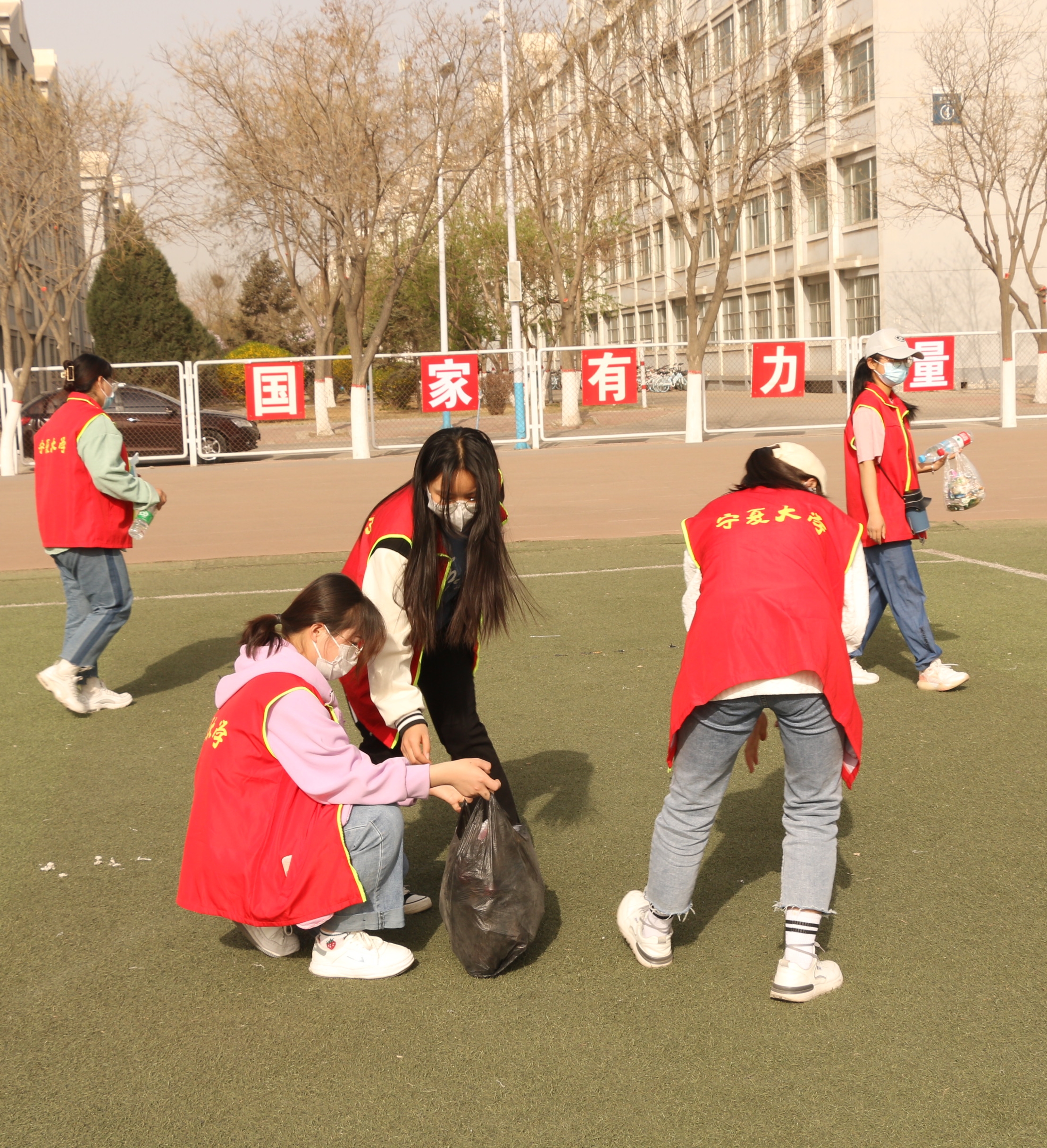 志愿者协会举办的“校园清扫”志愿活动在文萃校区操场顺利进行。