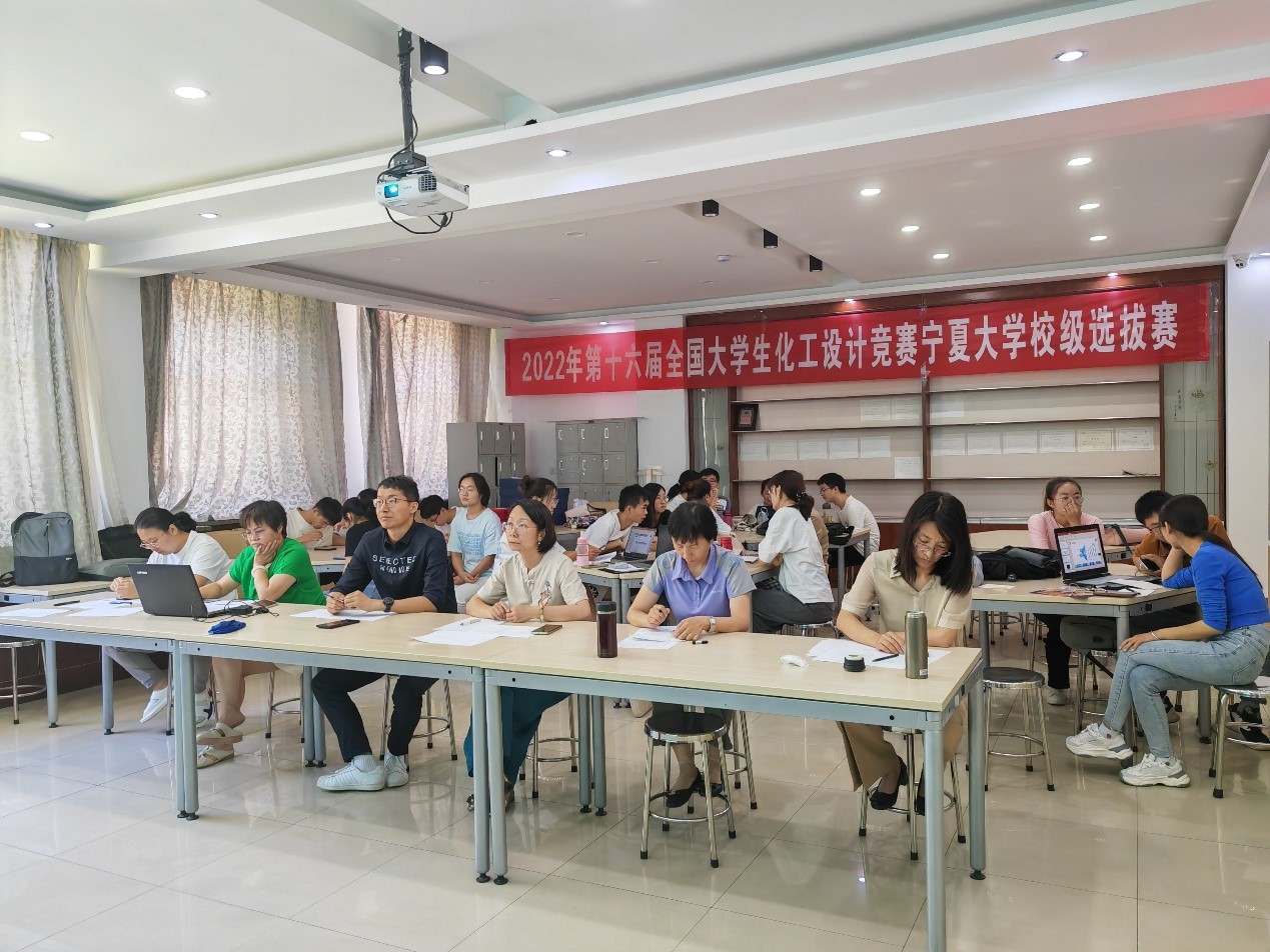 2022年7月22日,第十六届全国大学生化工设计竞赛宁夏大学校级选拔赛在文萃校区工科C楼202顺利举行,我校共有30名学生组成的6支队伍报名参赛,5支队伍成功提交作品。